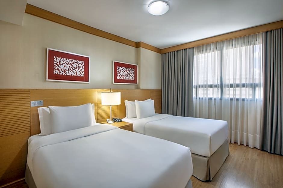 The suite's kitchenette, which features a microwave and an electric kettle, is available for cooking and storing food. This air-conditioned suite includes a flat-screen TV with cable channels, a private bathroom as well as a balcony with city views. The unit offers 2 beds.